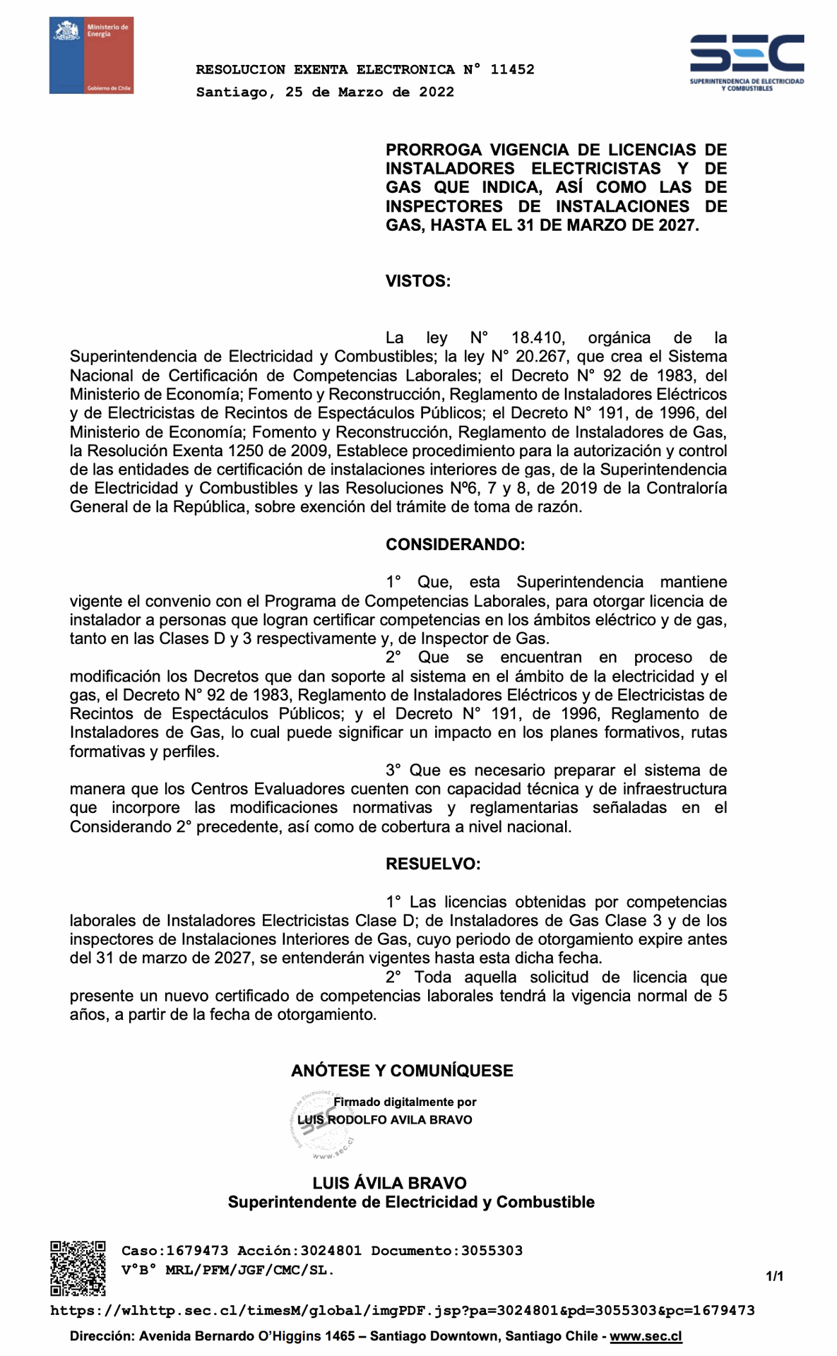 Programa Nacional de Renovación Licencia habilitante Superintendencia de Electricidad y Combustible - SEC.